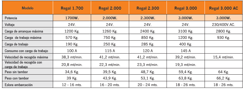 Características de los molinetes y varios modelos: