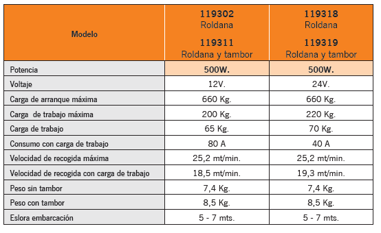 Características de los molinetes y varios modelos :