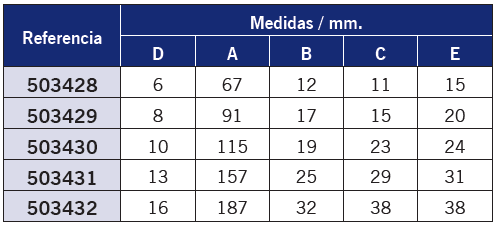 Sacavueltas anilla-grillete fabricado en acero inoxidable AISI-316. Medidasmm: A=94 B=16 C=17 D=8 E=23 Peso 0,150 kg