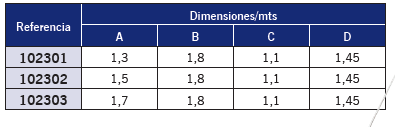 Considerando 1,30 mts de ancho ( la medida entre punto y punto de fijación ) . Esta medida es orientativa puede adaptarse en 10 cm de más o de menos.